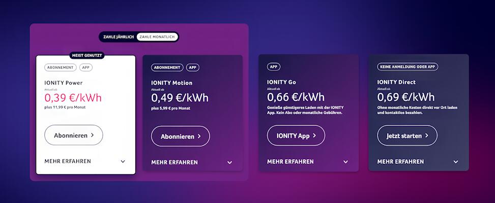 IONITY senkt den Adhoc-Preis in Deutschland von 75 auf 69 Cent pro kWh, per App auf 66 Cent. Die Abo-Tarife bleiben unverändert, starten weiterhin bei 39 Cent. Gleichzeitig stieg der Adhoc-Preis bei Autostrom Plus (Deutschlandnetz) von 59 auf 69 Cent. Das Preisgefüge bleibt dynamisch – ein genauer Blick vor dem Laden lohnt sich.