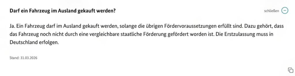 Die angekündigte E-Auto-Kaufprämie lässt weiter auf sich warten. Zwar wurden zusätzliche Details in den offiziellen FAQ ergänzt, eine finale Veröffentlichung steht jedoch noch aus. Klar ist: Die Förderung soll rückwirkend gelten und auch im Ausland gekaufte Fahrzeuge einschließen, sofern sie erstmals in Deutschland zugelassen werden. Für viele Käufer bleibt die Unsicherheit dennoch bestehen.